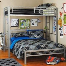 - Метално таванско легло дава възможност удобно да се поставят зони за сън, отдих и забавление за няколко деца в детската стая, дори и в най -малката зона;