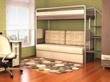 - Модели за възрастни тези мебели също помагат за комбиниране на различни зони в малко пространство, а това от своя страна значително спестява място в стаята;