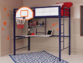 Много оригинална идея за стаята на тийнейджър ще бъде добавяне на баскетболна кошница и напречна греда към желязната рамка на леглото, която ще служи като хоризонтална лента. Всеки човек ще хареса тази идея..