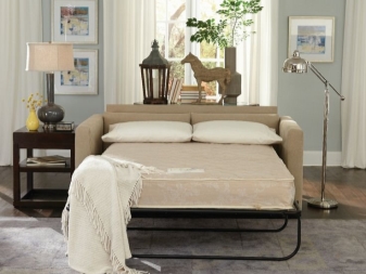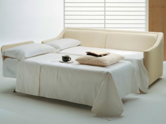 Преди беше много популярен сгъваем диван, сега това е не по -малко модерна подобрена версия, която има обичайните компактни размери и много разнообразен дизайн, защото леглото е представено в малко по -различна форма от самия диван. Обикновено механизмът е изработен от метал, върху който е опъната много здрава материя, така че дизайнът прилича на мида. Върху него трябва да поставите матрак, за да създадете удобно меко място..