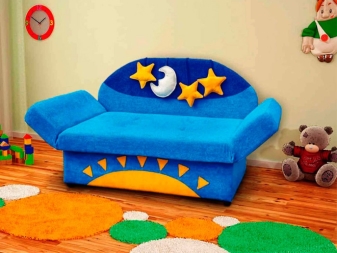 Диваните могат да имат всякаква форма, особено за детските мебели, такова място за спане може да привлече вниманието на всяко бебе, децата ще обичат да спят на светъл и необичаен диван.
