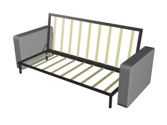 - Има и модели с метална рамка. Те са по -малко популярни, тъй като не са в състояние да издържат на такива големи натоварвания като дървени дивани. Но такива мебели са много лесни за ремонт – такава рамка е с болтове или може да бъде направена чрез заваряване.