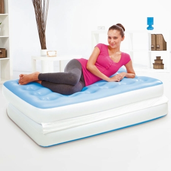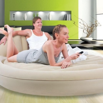 Така че, матраците са най -често срещаният вариант. Те са оценени заради своята гъвкавост – такива продукти могат да се използват на почивка (като места за спане), в малък апартамент (за гости или просто за спестяване на място) или за подобряване на състоянието на гърба (подходящ за хора с мускулно -скелетни нарушения). Това също е чудесен вариант, ако току -що сте закупили апартамент и все още не сте имали легло. Доста често въздушните матраци заменят обикновените или се използват като легло за постоянно. Изработени са от екологично чисти материали и не предизвикват алергии, по тях не се натрупват прах и микроорганизми. Използват се и за отдих на водата..