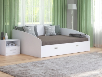 - Единична. Можете да използвате тези легла в спални, където местата за спане са разделени от нощно шкафче или подова лампа. Те са незаменими и за детските стаи, в които пространството ви позволява да поставите две единични легла вместо двуетажно легло. Такива продукти се произвеждат в размери от 80×190 cm до 90×200;