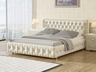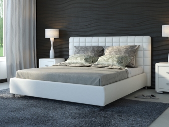 - Кожа. Такива модели са в състояние да добавят чар към всяка стая, те са изискани и удобни. Благодарение на използването на еко кожа, можете да изберете евтин модел. Тези легла са издръжливи и лесни за поддръжка. Такъв модел е “Алба” с повдигащ механизъм. Декоративните шевове украсяват таблата, използва се премиум еко кожа, дъното е тапицирано със спанбонд, матракът и ламелите са ортопедични.
