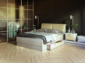 - ПДЧ. Леглата, изработени от този материал, са леки и издръжливи. Те се произвеждат в бюджетни версии, поради което са търсени от купувачите. Например моделът “Hepo” с повдигащ механизъм. Рамката на продукта е изработена от ламинирано ПДЧ, подножието и таблата са украсени с меки кожени вложки и декорирани с копчета.