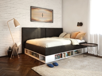 - Една от най -новите тенденции – черни мебели. Такива легла изглеждат особено впечатляващи на фона на светли стени..