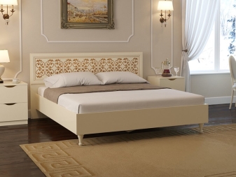 - И ето бюджетен, но приятен вариант от висококачествено ламинирано ПДЧ. Въпреки размера си, леглото изглежда грациозно и безтегловност. Къдрави крака и модел в златист тон на таблата придават на леглото особен чар. Отличен модел за ценители на класически интериор.