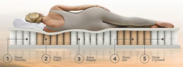 - в средната част на пружините са с повишена твърдост и осигуряват съпротива с голям натиск, задържайки обемните части на тялото;