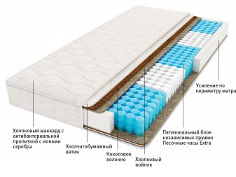 Най -доброто в това отношение обаче ще бъде матраци с много джобове. Тяхното предимство се крие във факта, че около хиляда пружини са разположени на един квадратен метър, което създава високи ортопедични свойства, които остават непроменени дори когато се използват от хора с голямо тегло..
