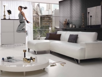 - Няма характерна странност на формите. В основата на такива мебели, като правило, има стандартен диван, който е много удобен за поставяне до ъгъла или близо до стената, в зависимост от вида на гърба.
