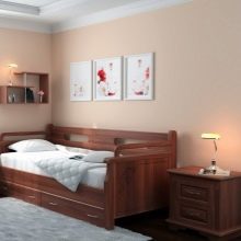 - Дървеният диван се счита за най -класическия вариант.м. Обикновено тази опция се използва, когато става въпрос за табуретка с прибиращ се или сгъваем механизъм. В този случай меката част просто се намира в обикновена дървена рамка. Често се използват бор, дъб, кедър, орех. В зависимост от вида дърво, цената на мебелите също може да варира;