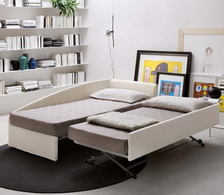 - Може да е налице един от най -простите и успешни механизми за превръщане в място за спане.. В този случай мебелите са направени по -скоро като диван;