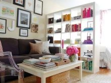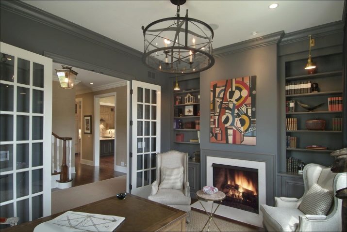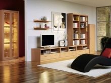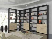 Често стените и шкафовете са сходни по тон. Така интериорът на хола, читалнята може да бъде декориран. Интериорът на една стая става колоритен, ако основният цвят е нюанс, който далеч не е неутрален. Тъмен или сив шкаф с отворени рафтове ще изглежда ефектно на фона на всяка контрастираща стена.