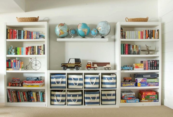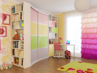 В сравнение с шкафове със затворени или полуотворени рафтове, може да се отбележи, че конструкциите с отворени рафтове изискват ред и постоянно почистване. Шкафовете без врати са обект на интерес за дете, което се стреми да разруши всичко, което е добре подредено. Често е необходимо да се скрие съдържанието от любопитни очи. Красива завеса ви позволява бързо да решите този проблем – просто трябва да го издърпате.