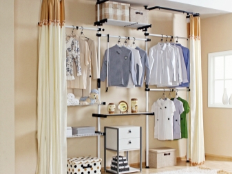 Гардеробът, декориран с ефектна завеса, идеално ще се впише в цялостния интериор на спалнята, където има много тъкани. С правилния избор на материал можете да създадете атмосфера на романтика в стаята..