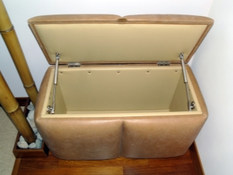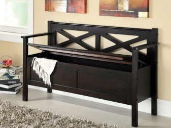 За коридор е подходящ продукт, направен в класически стил. Това е особено важно, ако имате нужда и от багажник за обувки. Предназначението на пейката в този случай е повече за съхранение на обувки, отколкото за удобен престой на нея. В същото време тя трябва да бъде забележима и да има облицовка от кожа или изкуствена кожа. В детска стая такъв продукт може да има всеки стил. Основното е, че той трябва да вземе предвид ситуацията. За момиче банкетът може да бъде украсен с кадифе и обемни цветя. Ще бъде много интересно, ако корицата е вързана от майка ми. За момчето продуктът под формата на футболна топка ще бъде оригинален. Още по -интересно е, ако вътре има място за съхранение на играчки..