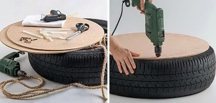 - Мекотата на седалката трябва да бъде осигурена от гума от пяна. Необходимата форма се изрязва от него и след това се прикрепя към дъното на продукта..