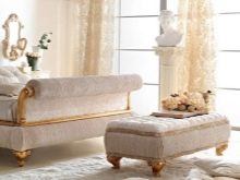 Мека пейка ще изглежда добре тук. Ако искате мебелите в такава стая да изглеждат по -царски луксозни, трябва да обърнете внимание на шикозното боядисване на краката на дървените елементи. Пуф ще изглежда добре – мека пейка с квадратна форма.