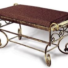 Чудесен вариант би бил използването на ковани елементи. Те сякаш ни насочват към атмосферата на Прованс. Такива банкети изглеждат много ефирни и безтегловни: те ще изглеждат ефектно във всяка стая, което ще зарадва както собствениците, така и гостите. Плетените дизайни се вписват идеално в стила на страната. Коването може да се използва и в източен стил, но тук приоритет ще бъдат цветните материали и изобилието от възглавници..