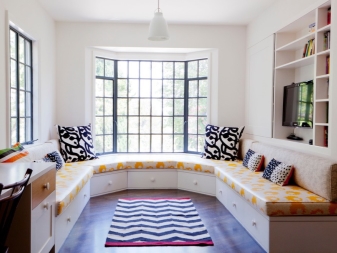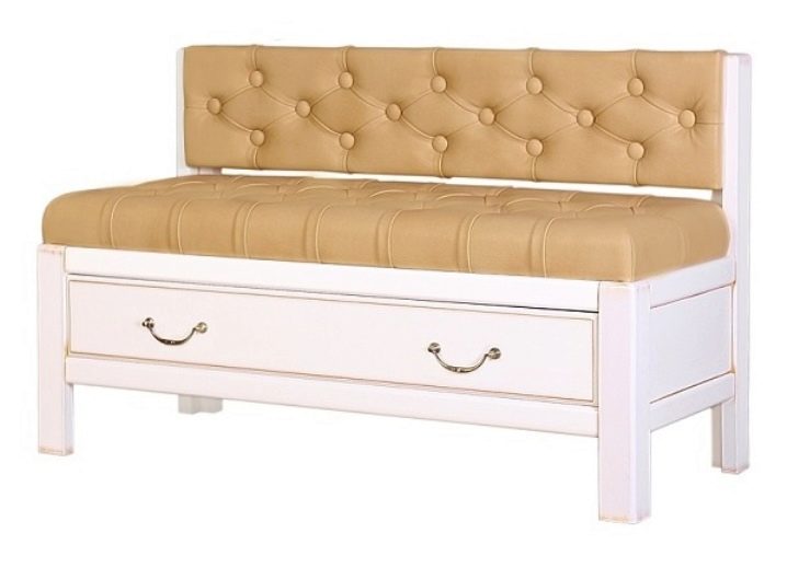 За гостите и хола моделът с чекмедже и облегалка е подходящ. Местоположението на чекмеджето не е толкова важно и зависи от вашето желание: да го отворите отстрани или отгоре. Чекмеджето помага на собственика да спести свободно място в стаята. Тук могат да се поставят малки неща. Бяла пейка е подходяща за всекидневна. Добър вариант – модели Caprio с дължина 1,2 м.