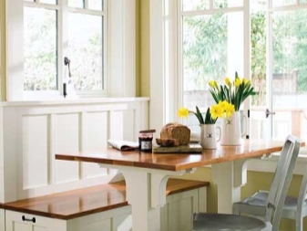 Пейката може да се използва за съхранение на кухненски уреди и прибори за готвене. Спестяване на кухненско пространство – това е, което си струва да закупите 2-3 банкета за кухнята.