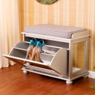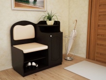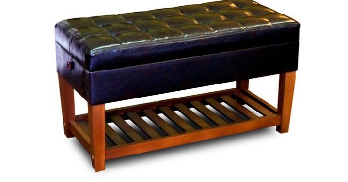 Тази удобна и удобна опция не само ще ви позволи удобно да останете в коридора, докато чакате, но и ще съхранявате обувките си на рафтовете. Прави впечатление, че багажникът за обувки също има скрито пространство под седалката, където можете да поставите необходимите неща. Демократичната цена, качеството и надеждността са основните предимства на такъв продукт. Моделът е доста практичен, тапицерията е от изкуствена кожа. Продуктът е лесен и лесен за грижа. Тя ще се превърне в истинска декорация на вашия коридор..