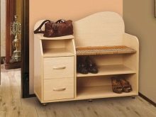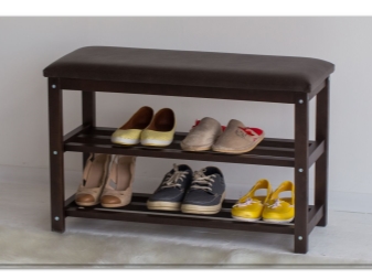 Има и опции с рафтове. Там ще бъде възможно да поставите всички обувки на вашето домакинство и гости. Такива продукти не само ви позволяват да запълните и оптимално организирате пространството, но също така помагат на вашия интериор да придобие жар. Съвременните производители произвеждат банкети с различни размери и нюанси. Те могат да бъдат изработени от различни материали. Цените за такива продукти също се различават..