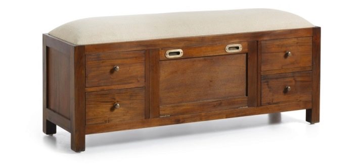 Тази опция може да се припише на класическия тип. Това може да бъде дървен диван или бюфет. Има голямо разнообразие от модели и стилове. Елементите могат да бъдат различни: от прости до шарени. Има опции със или без облегалка. Бакетите могат да бъдат оборудвани с кутия за обувки, както и с шкаф, могат да имат стелаж.