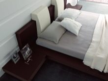 - Тапицерията с плаващо легло е разнообразна. Тъй като такива модели сами по себе си не са евтини, за тях се използват много висококачествени материали. Леглата са тапицирани с еко- и естествена кожа, плътни мебели. Лаконичните модели от дърво изобщо нямат тапицерия – те просто пасват на матрак и покривало. Редица модели имат брони, така че матракът “потъва” в тях и повърхността му е изравнена с броните. По -сложните модели в модерен стил са просто дървена “подложка”, върху която отгоре се поставя матрак, фиксиращ се със специални крепежни елементи. Изглежда страхотно, ако матракът е избран не прост, но много висок, като легло от пера.