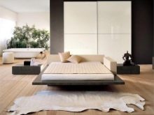 Обикновено се използват 2-3 цвята. Светли, равномерни стени, за разлика от тях – подът и мебелите. Например, напълно бяла стая може да има червен (черен) под и легло със същия цвят. Това трябва да е единствената мебел в стаята. Над леглото можете да окачите лаконична картина, 1-2 светлинни източника с проста форма.