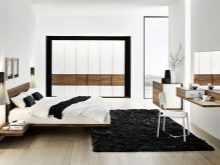 Ако харесвате хай-тек, спалнята ще трябва да бъде декорирана в черно и бяло, което в идеалния случай ще бъде допълнено от лъскави, хромирани метални детайли.. Легло с черна основа и бяла табла (и обратно) е перфектно. Таблата може да бъде направена и от стъкло – ще изглежда необикновено впечатляващо. Стените могат да бъдат украсени с монохромни градски или техно пейзажи. Определено са необходими няколко лампи – подова лампа с проста форма или футуристичен дизайн.