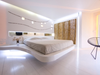 За да постигнете най -добри резултати в дизайна с плаващо легло, можете, разбира се, в модерни и “студени” стилове, от които произтичат строгост, футуризъм, пространство.