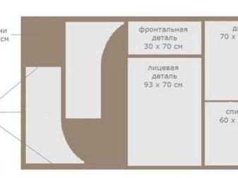 Трябва да направите следващия модел и да го прехвърлите върху тъканта, като добавите 1,5 см към всеки ръб – това ще бъдат надбавките за шевове. Ако правоъгълните части на бъдещия стол могат да бъдат изрязани без шаблон, тогава е по -добре да изрежете страничните според “шаблоните”, така че да се окажат симетрични.