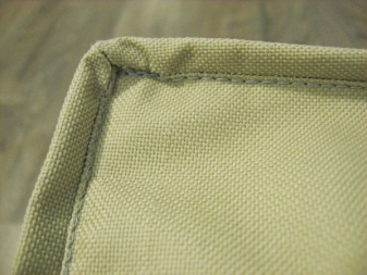 След това смилайте задната и предната част плюс предната част, докато се образува своеобразна кутия. За да направите шева по -издръжлив, можете да обработите ръбовете му с овърлок (във всеки модерен модел има имитация на този шев – обикновен зигзаг). Предната част на стола е пришита последна и не е допълнително подсилена. Обърнете почти готовия капак и поставете допълнителна линия по периметъра на предната част.