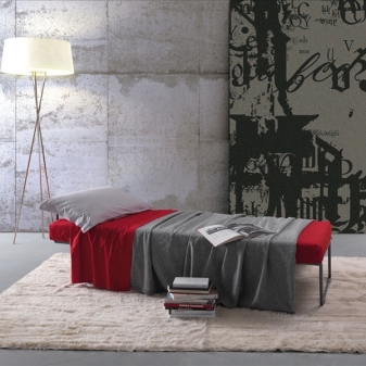 - Ако искате да поставите пуф в просторна всекидневна, по -добре е да изберете голям, който се сгъва в пълно легло.. Тези пуфове обикновено се правят върху метална рамка., те са достатъчно удобни за спане. Но най -често те са доста тежки (в сравнение с други продукти) и се транспортират по -малко добре..