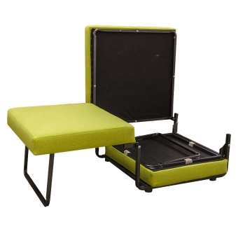 Така че малък пуф се превръща в сгъваемо легло и това е основното му предимство пред традиционните сгъваеми легла, които дори в сгънато състояние заемат много място.