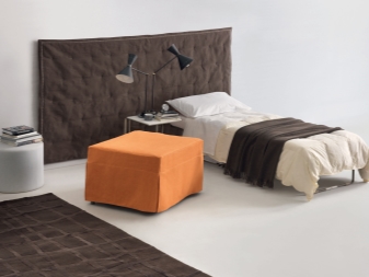 - Отделна категория от такива легла е комплект пуфове, които при желание могат да бъдат закачени и да получат допълнително легло. Те могат да бъдат чудесно решение за всекидневна или кухня, където ще действат като кът за сядане на гостите. Друго място, подходящо за такива пуфове, е за деца. Някои производители на мебели създават цветни комплекти. Например, популярният модел е пуф-трансформатор “мандарина”. Неговите клинови възглавници могат да бъдат подредени заедно или използвани поотделно – както желаете..