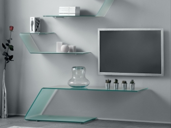 В модерна спалня рафтовете от стъкло или органично стъкло изглеждат добре.. Те могат да бъдат прозрачни или от цветно стъкло. Ако искате да озарите стаята си, можете да насочите вниманието си към рафтовете, изработени от витражи. Те са украсени с цветни шарки, така че самите те могат да действат като декоративни детайли в интериора..