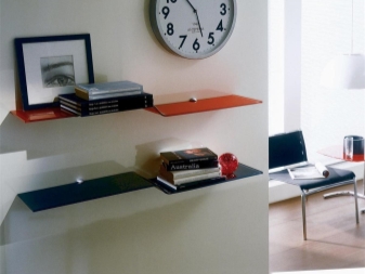 Висящите рафтове могат да бъдат отворени или затворени. Отворените са избрани така, че да украсяват стаята. Слагайки своите дрънкулки или книги с красиви шипове, можете постоянно да им се възхищавате. Покритите рафтове са страхотни, защото помагат да се предпазят нещата от натрупване на прах. Те могат да бъдат остъклени, а в някои случаи и завеси. Вторият вариант ще бъде интересно да изглеждате в интериора в стила на Прованс или класика.