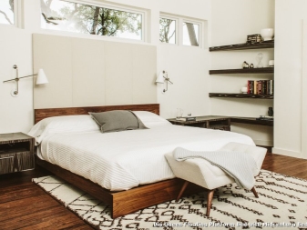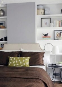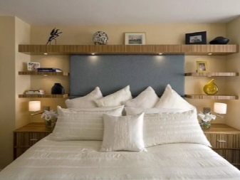 Широк рафт може да бъде прикрепен над леглото. Основното е да го прикрепите възможно най -плътно, за да не падне в грешния момент.. На такъв рафт можете да поставите всички необходими неща, които използвате преди и след сън. Това например будилник, всякакви кремове, гребени, мобилен телефон и така нататък. Този рафт ще замени обемистата ви нощна шкафче..