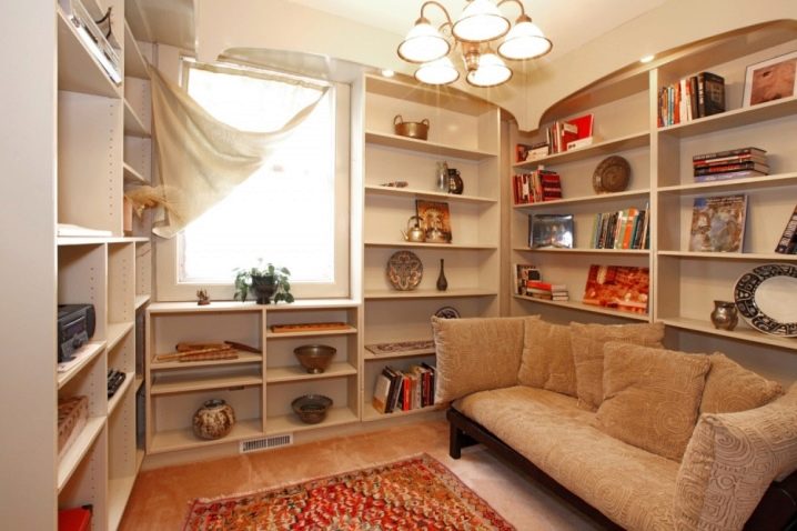 Стенните рафтове често се поставят около прозореца. Инсталирани на такова място, лавиците за книги украсяват стаята и създават перфектния ъгъл за четене. Поставете малък диван или лек стол до прозореца. По този начин можете да четете книги през цялото време на естествена светлина. Можете да инсталирате малък рафт с няколко рафта до стола. Той ще замени монтираната на стена версия. Много хора предпочитат точно такива рафтове, защото изглеждат много красиви..