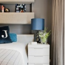 Дизайнерите твърдят, че с помощта на прости рафтове можете да разделите спалнята си на няколко удобни зони.. Чрез окачване на рафт между леглото и работното бюро, вие разделяте стаята на работна зона и кът за сядане..