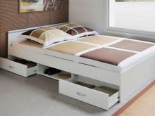 Ако интериорът е декориран в европейски стил, можете също да поставите легло с нощно шкафче в основата му, което ще служи като прекрасно допълнително място за съхранение в стаята..