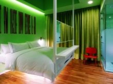Интересно дизайнерско решение може да бъде окачено легло, направено в съответствие с европейските стандарти. Ширината и дължината на такова двойно легло могат да бъдат избрани произволно – от 160 x 200 до 200 x 220 см. Висящото легло внася лекота и отпускане във вътрешността на стаята, стаята е изпълнена със светлина и въздух. В същото време той е надежден като легло на обикновени крака, но има и своите недостатъци – може да се разхлаби.