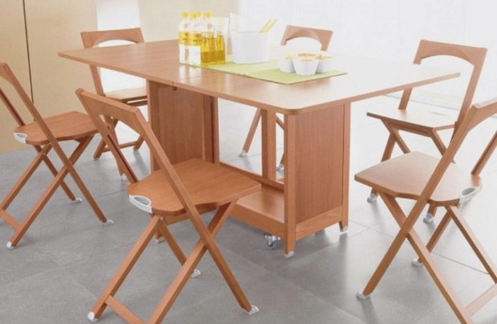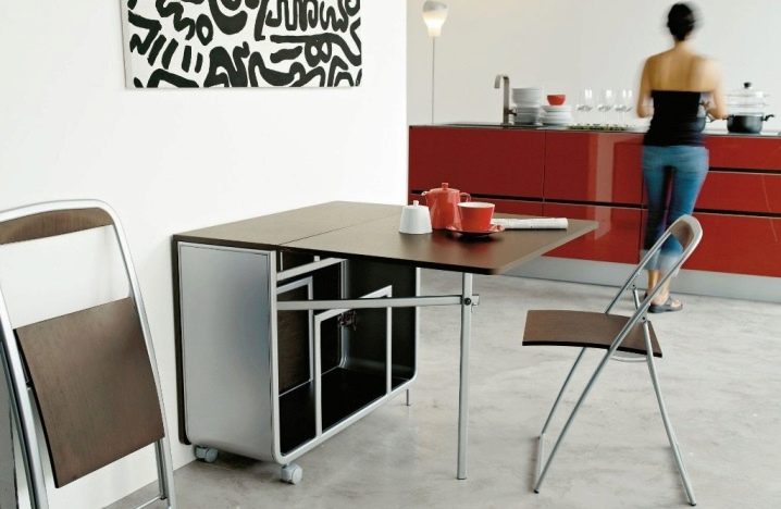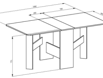 Големите „книги“ с модерен дизайн могат да имат размери 32x80x75 сантиметра в компактно състояние и 235x80x75 след отваряне. Този размер е напълно достатъчен дори за голямо семейство. Стандартните размери на маси за кухни и лоджии са 130x60x75 см. Не си струва да се разглеждат миниатюрните мебели като недостатъчно функционални, дори с размери 75x60x75 cm, конструкцията може да бъде оборудвана с разтегателно чекмедже за кухненски прибори.