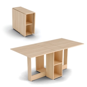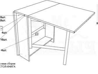 В някои случаи таблиците с книги се купуват за писане. В разгънато състояние дълбочината им веднага се увеличава с метър (ако първоначално е била 20 или 60 см, то в разгънато състояние ще бъде 120 или 160). Препоръчително е да използвате най -компактните решения, ако стаята е много малка или не повече от двама души ще седнат на масата. За просторна зала си струва да закупите мебели с голям формат.