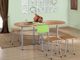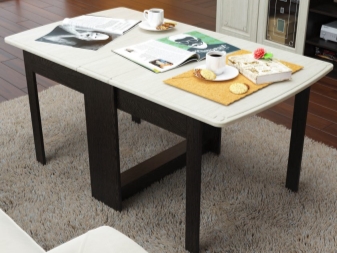 В някои случаи таблиците с книги се купуват за писане. В разгънато състояние дълбочината им веднага се увеличава с метър (ако първоначално е била 20 или 60 см, то в разгънато състояние ще бъде 120 или 160). Препоръчително е да използвате най -компактните решения, ако стаята е много малка или не повече от двама души ще седнат на масата. За просторна зала си струва да закупите мебели с голям формат.