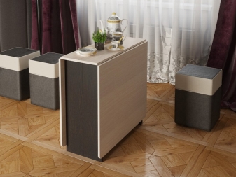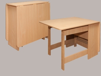 Големите „книги“ с модерен дизайн могат да имат размери 32x80x75 сантиметра в компактно състояние и 235x80x75 след отваряне. Този размер е напълно достатъчен дори за голямо семейство. Стандартните размери на маси за кухни и лоджии са 130x60x75 см. Не си струва да се разглеждат миниатюрните мебели като недостатъчно функционални, дори с размери 75x60x75 cm, конструкцията може да бъде оборудвана с разтегателно чекмедже за кухненски прибори.