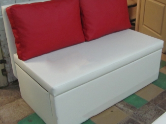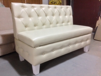 Това парче мека мебел не само ще направи кухнята по -уютна, но и ще помогне за създаването на удобни места за сядане на масата през деня, а през нощта, ако е необходимо, ще се превърне в място за спане. За по -лесно използване винаги има място за съхранение на кухненски прибори под седалката на дивана